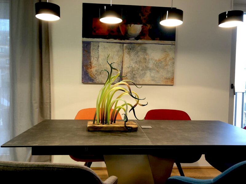 With over thirty years of experience on the island of Murano, Davide Penso has developed a distinctive artistic language that blends blown glass, light, and spatial design. Through Home Artmosphere, he creates bespoke lighting sculptures and installations that unite craftsmanship and contemporary aesthetics — works that do not simply decorate, but define a space. His approach avoids virtuosic excess: originality is found in simplicity and good taste, in the ability to dose talent just enough to convey an idea. Each element is blown by hand, shaped with a natural instinct for form and rhythm. The result is a collection of unique pieces — suspended compositions where glass, air, and light coexist in harmony.Home Artmosphere collaborates with private clients, galleries, and designers seeking exclusive, site-specific installationsthat express elegance through material and light.