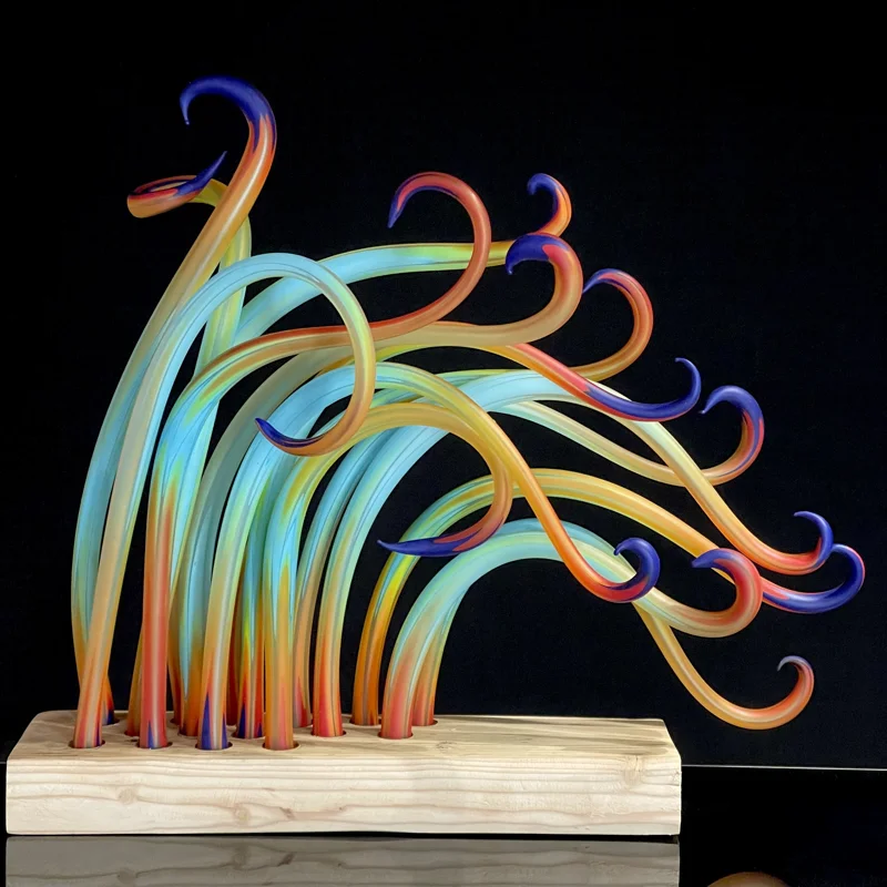 With over thirty years of experience on the island of Murano, Davide Penso has developed a distinctive artistic language that blends blown glass, light, and spatial design. Through Home Artmosphere, he creates bespoke lighting sculptures and installations that unite craftsmanship and contemporary aesthetics — works that do not simply decorate, but define a space. His approach avoids virtuosic excess: originality is found in simplicity and good taste, in the ability to dose talent just enough to convey an idea. Each element is blown by hand, shaped with a natural instinct for form and rhythm. The result is a collection of unique pieces — suspended compositions where glass, air, and light coexist in harmony.Home Artmosphere collaborates with private clients, galleries, and designers seeking exclusive, site-specific installationsthat express elegance through material and light.
